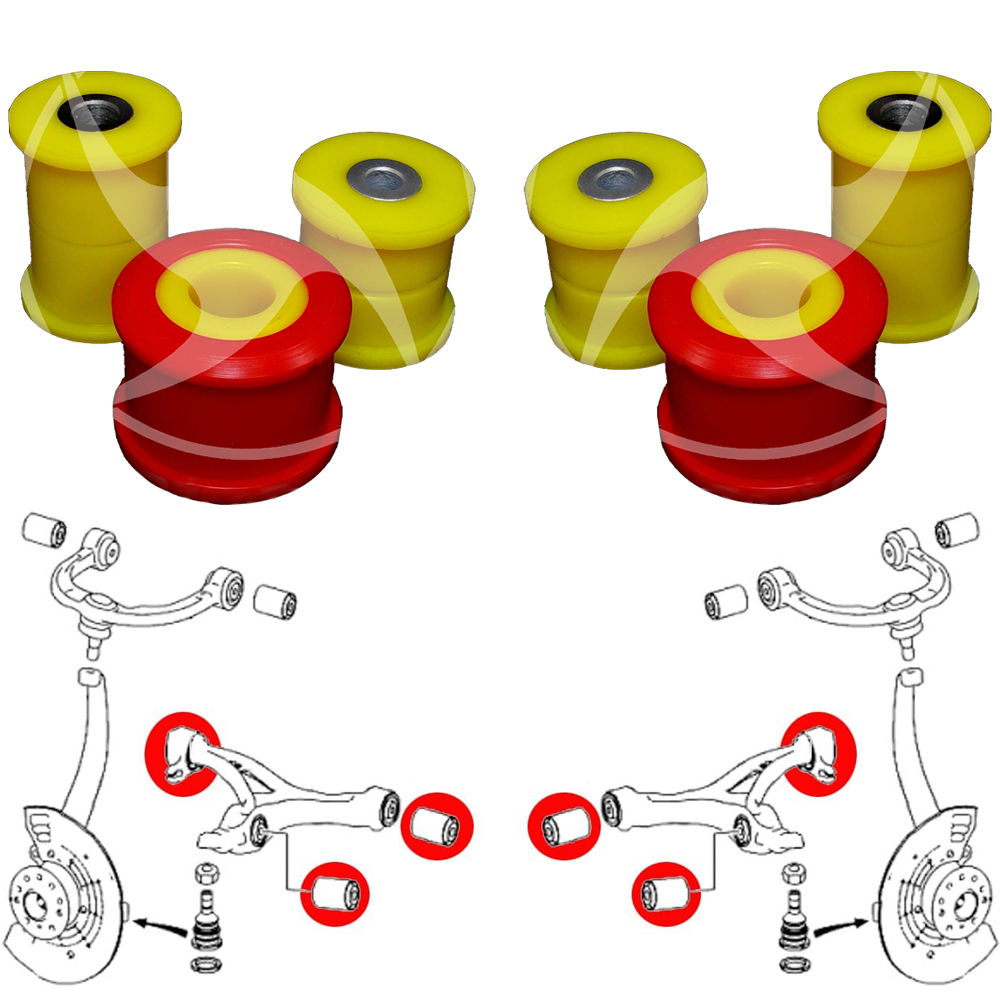 Kit 6 silentblocs en polyuréthane pour deux triangles inférieurs avant, compatible avec les véhicules suivants: