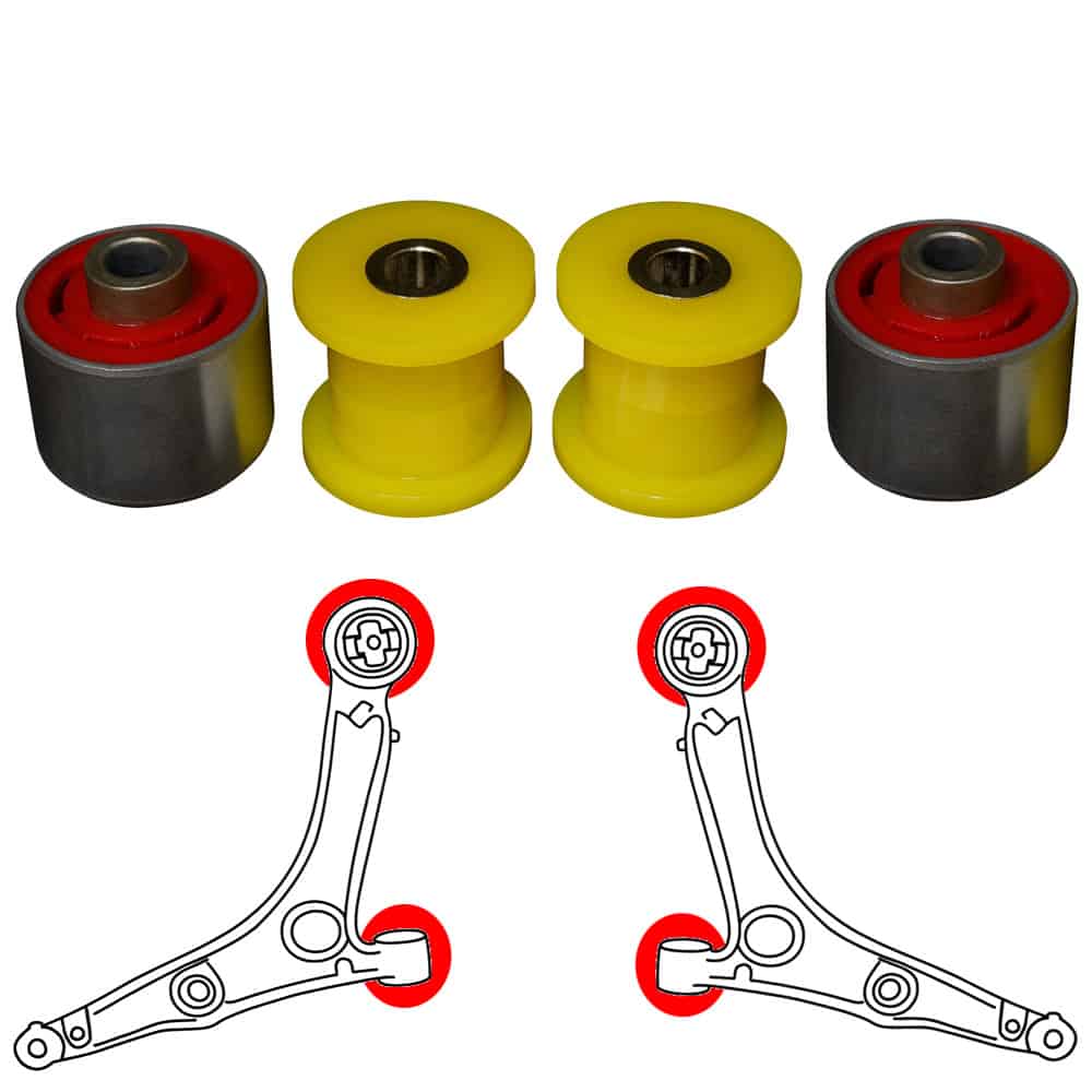 4 Buchsen aus Polyurethan für zwei vordere Dreiecksquerlenker, passend für die folgenden Fahrzeuge: