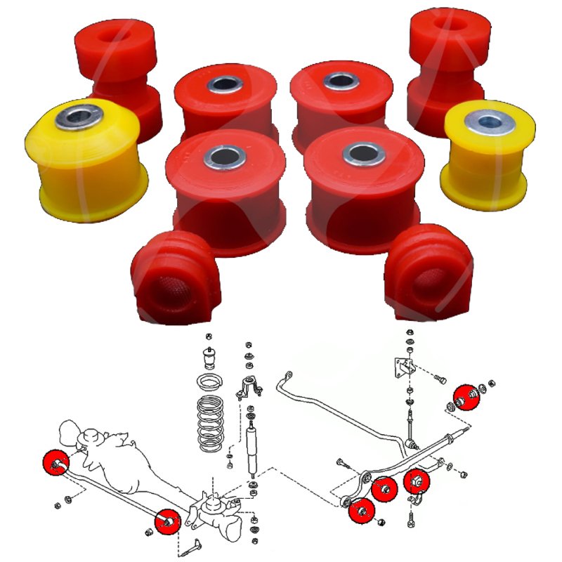 Polyurethane front suspension bush kit, compatible with the following vehicles: