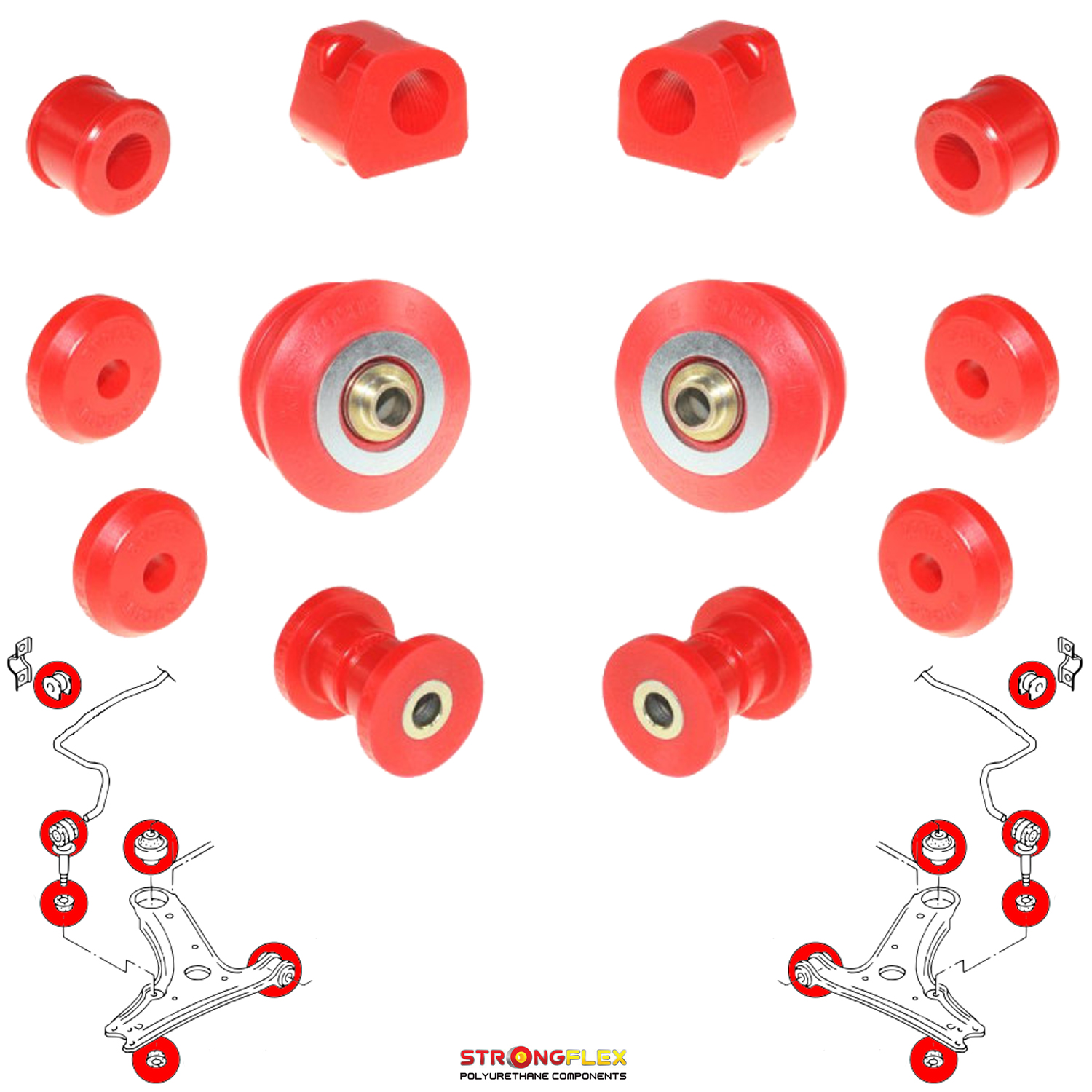 Polyurethane front suspension bush kit, compatible with the following vehicles: