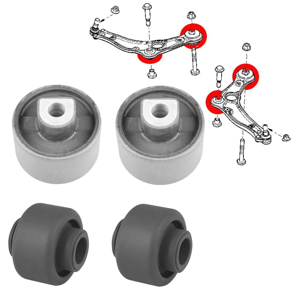 Kit of 4 bushes for the 2 front arms (for 18″ rims only), compatible with the following vehicles:
