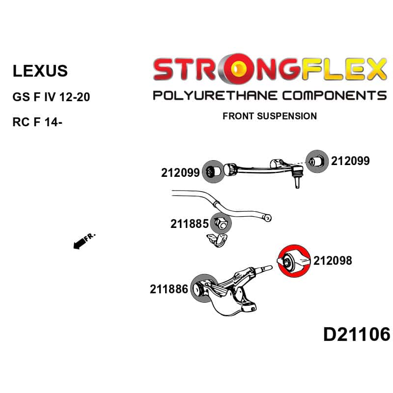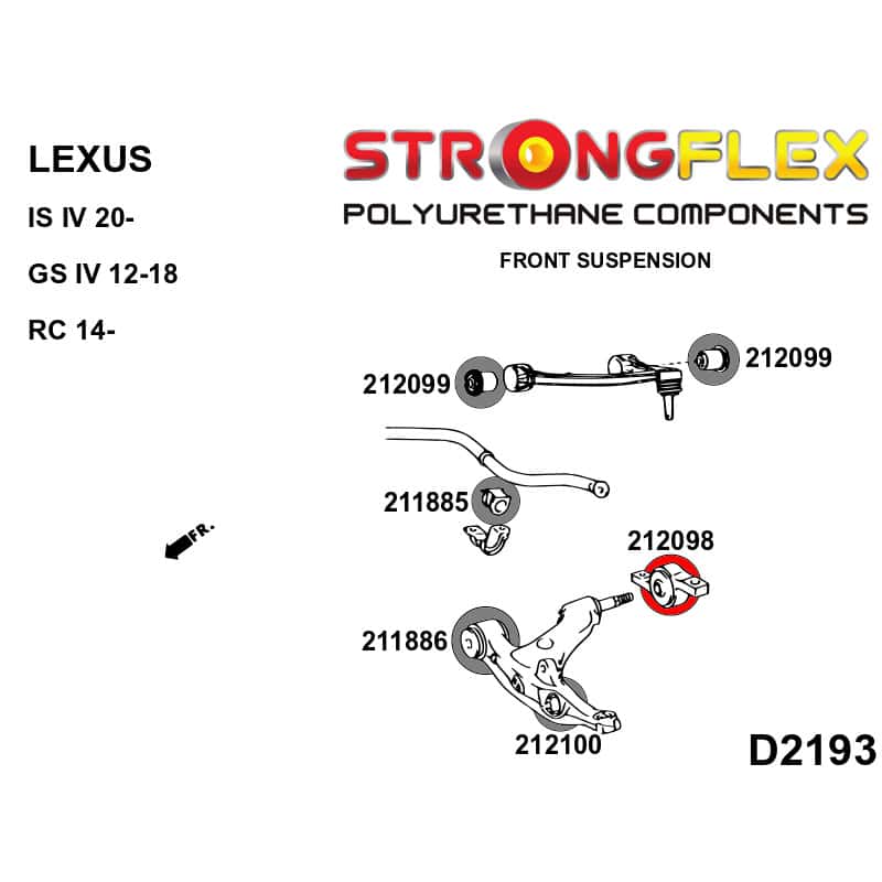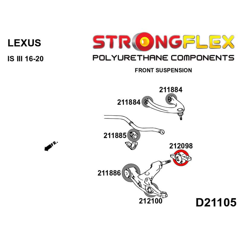 Polyurethane bushes for both front lower arms, compatible with the following vehicles: