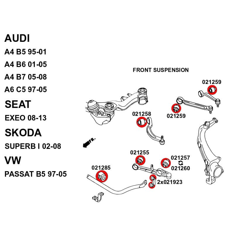 Kit suspensi贸n delantera, Audi A4/A6, Seat Exeo, Skoda Superb, VW Passat B5