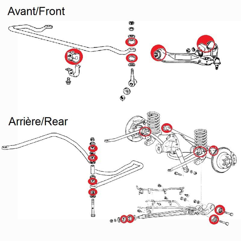 Kit silentblock de suspensi贸n de poliuretano, compatible con los siguientes veh铆culos: