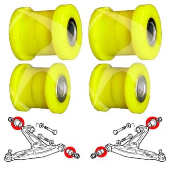 Kit di 4 Silent Block in poliuretano (cuscinetti anteriori e posteriori) per la riparazione dei quadrilateri anteriori su Peugeot 205 (GTI incl. 1.6 e 1.9)