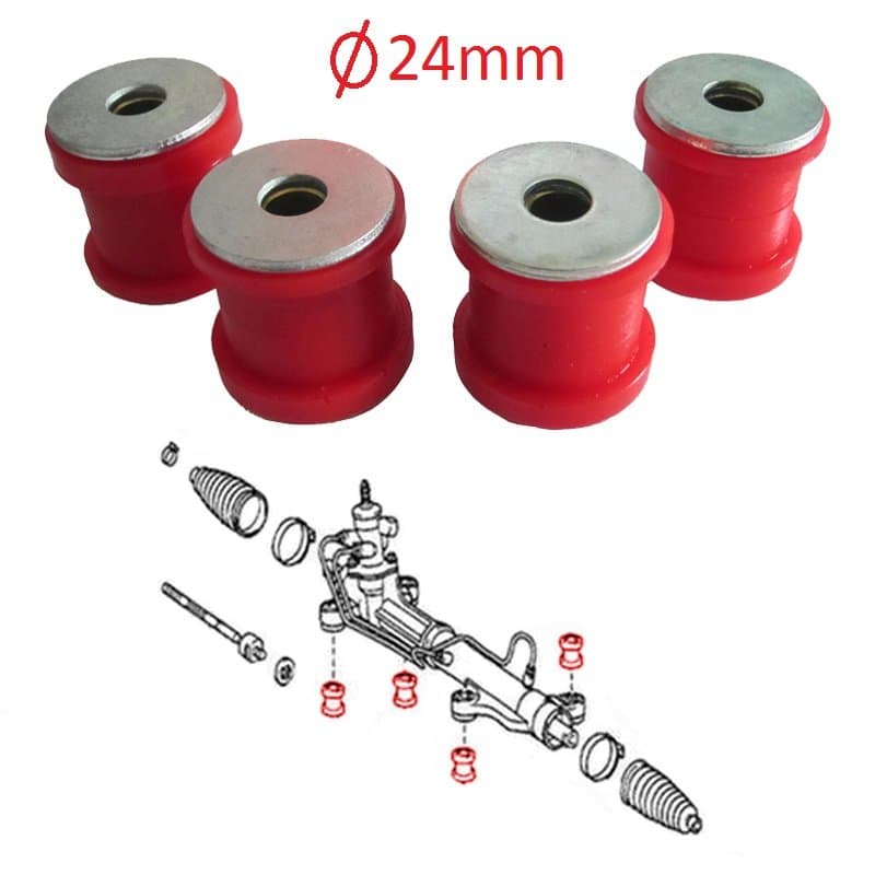 4 Silentblocs (24 mm) in poliuretano per la cremagliera dello sterzo, Toyota: