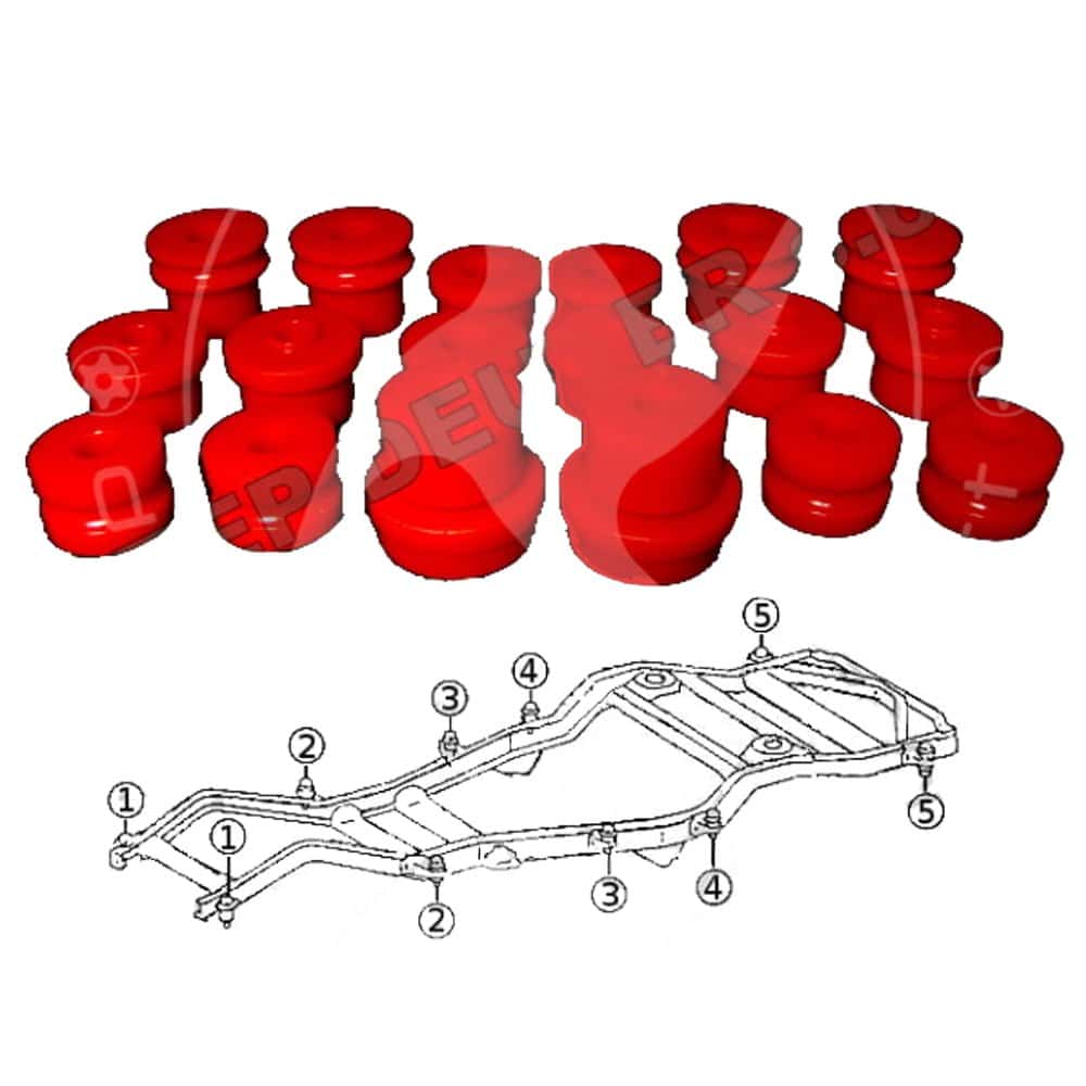 Kit silentblocs in poliuretano per il collegamento tra chassi e carrozzeria, compatibile con i seguenti veicoli: Toyota Land Cruiser (01.1990-02.1998) Modelli: FJ80, FZJ80 HDJ80, HZJ80 Pezzi nuovi, venduti con fattura. Tutti i nostri prodotti hanno una garanzia di 2 anni.