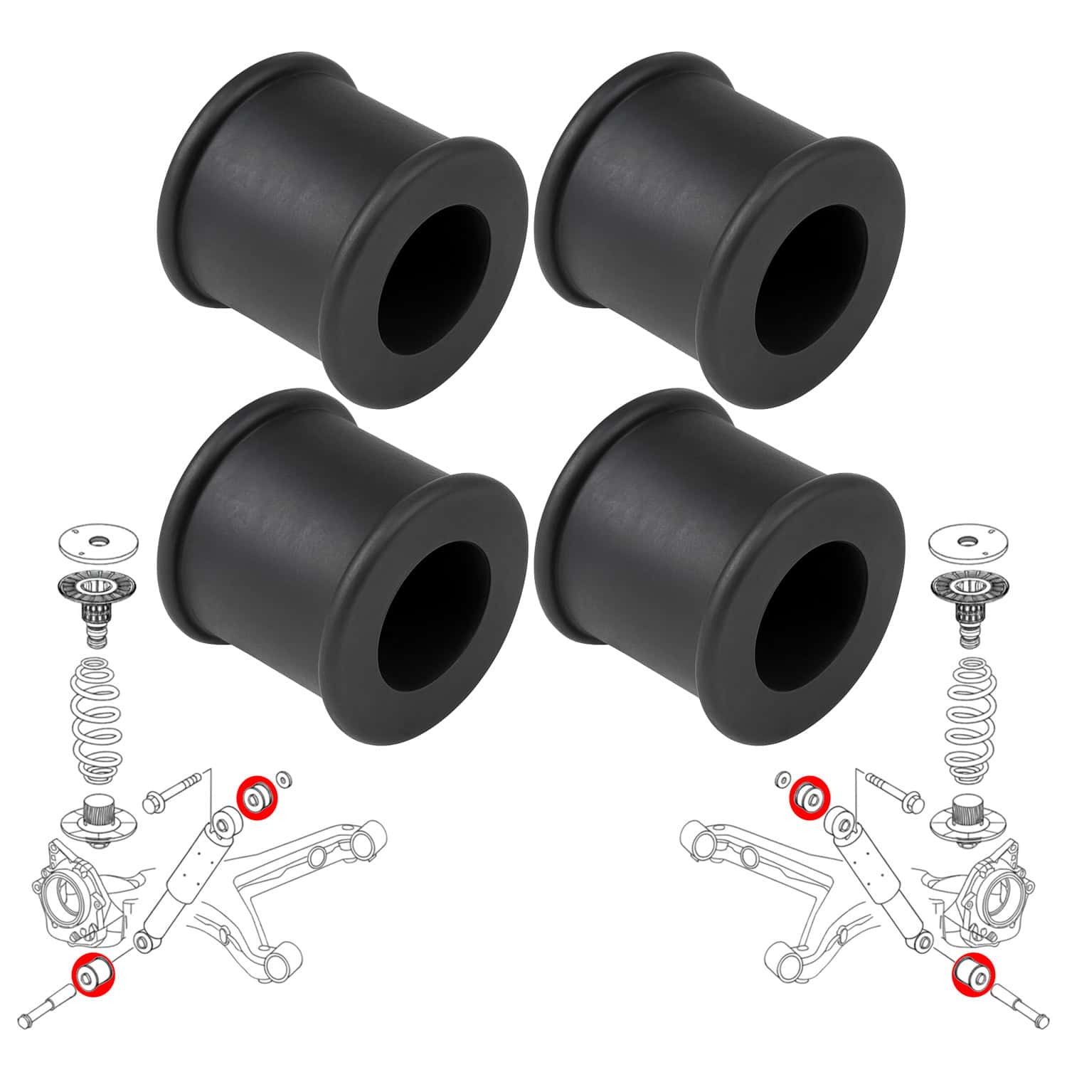 Silentblock su entrambi gli ammortizzatori posteriori, compatibile con i seguenti veicoli: