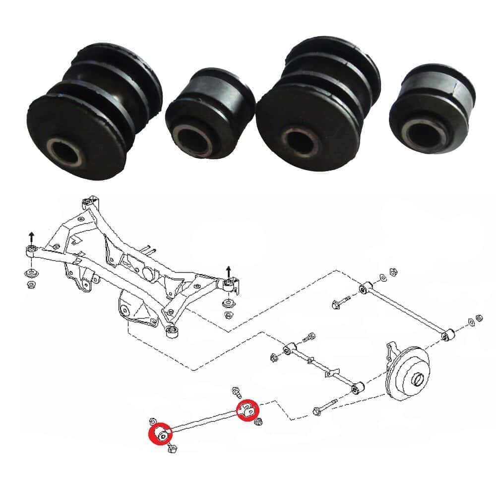 4 Silentblock su entrambi i bracci posteriori per Nissan X-Trail (06.2001-06.2007)
