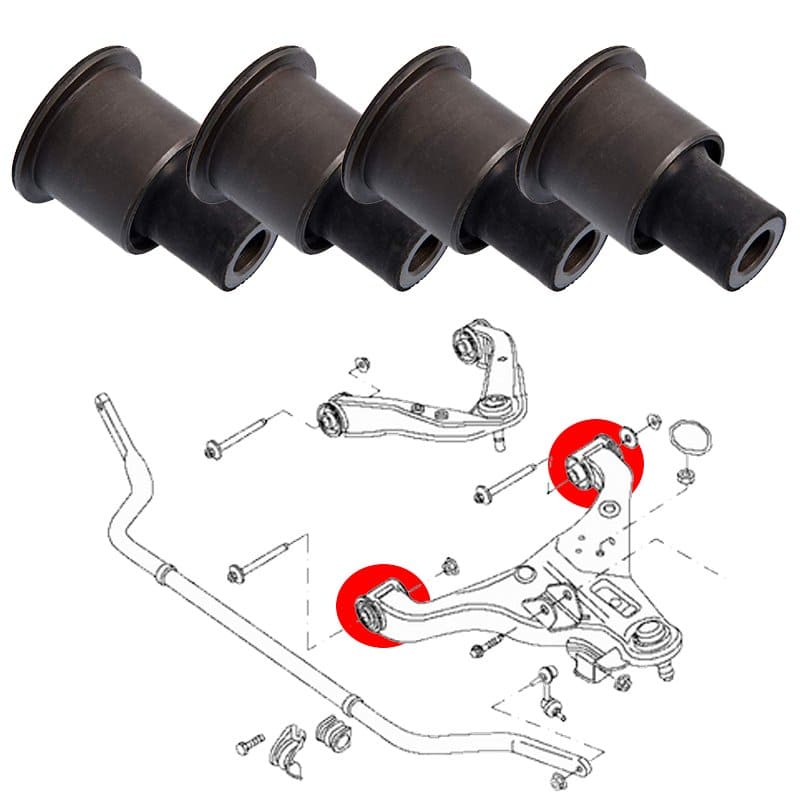 4 Silentblocs pour deux bras inférieures avant, compatible avec les véhicules suivants: