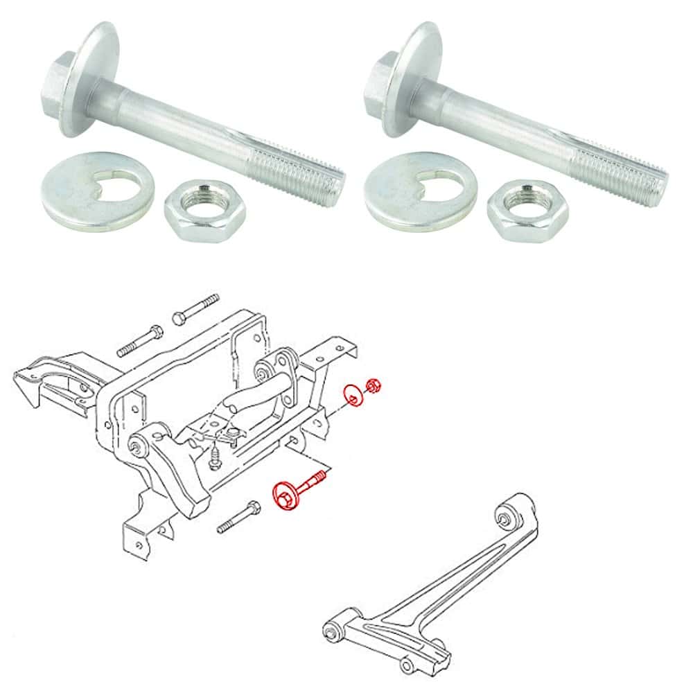 Kit boulons excentiques+rondelles+écrous pour deux bras, compatible avec les véhicules suivants:
