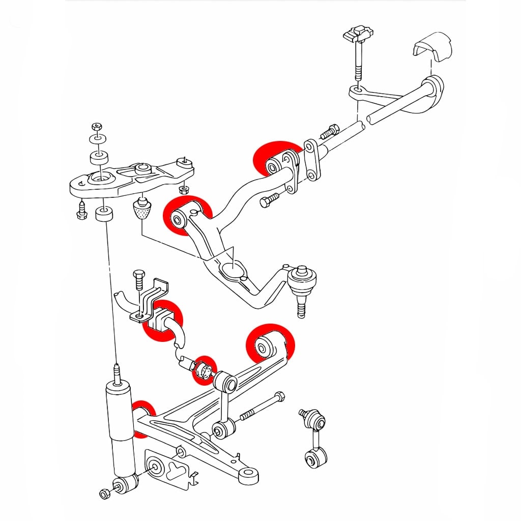 Silentblocs de barre stabilisatrice avant et bielletes