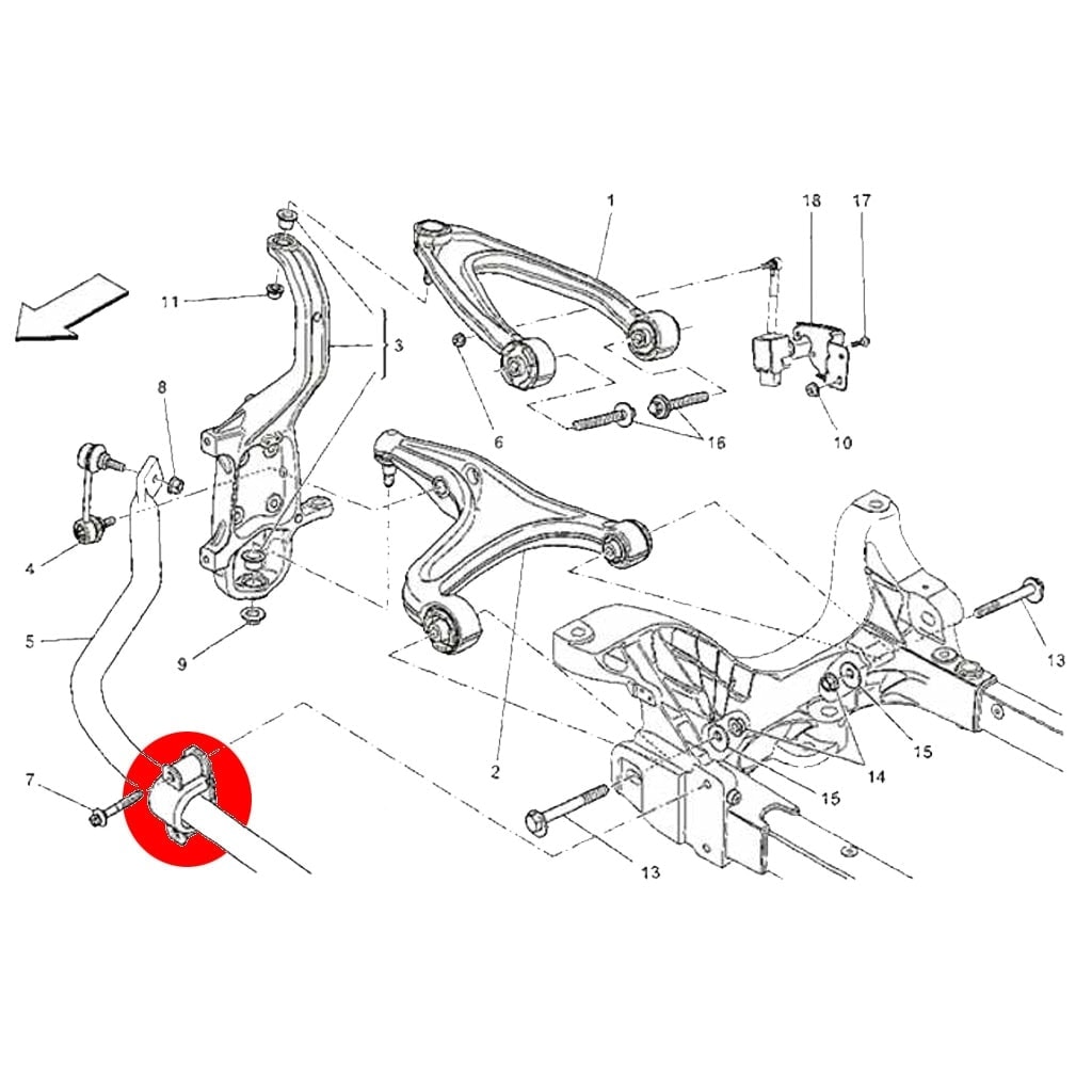 Silentblocs de barre stabilisatrice avant, Ghibli III, Quattroporte VI