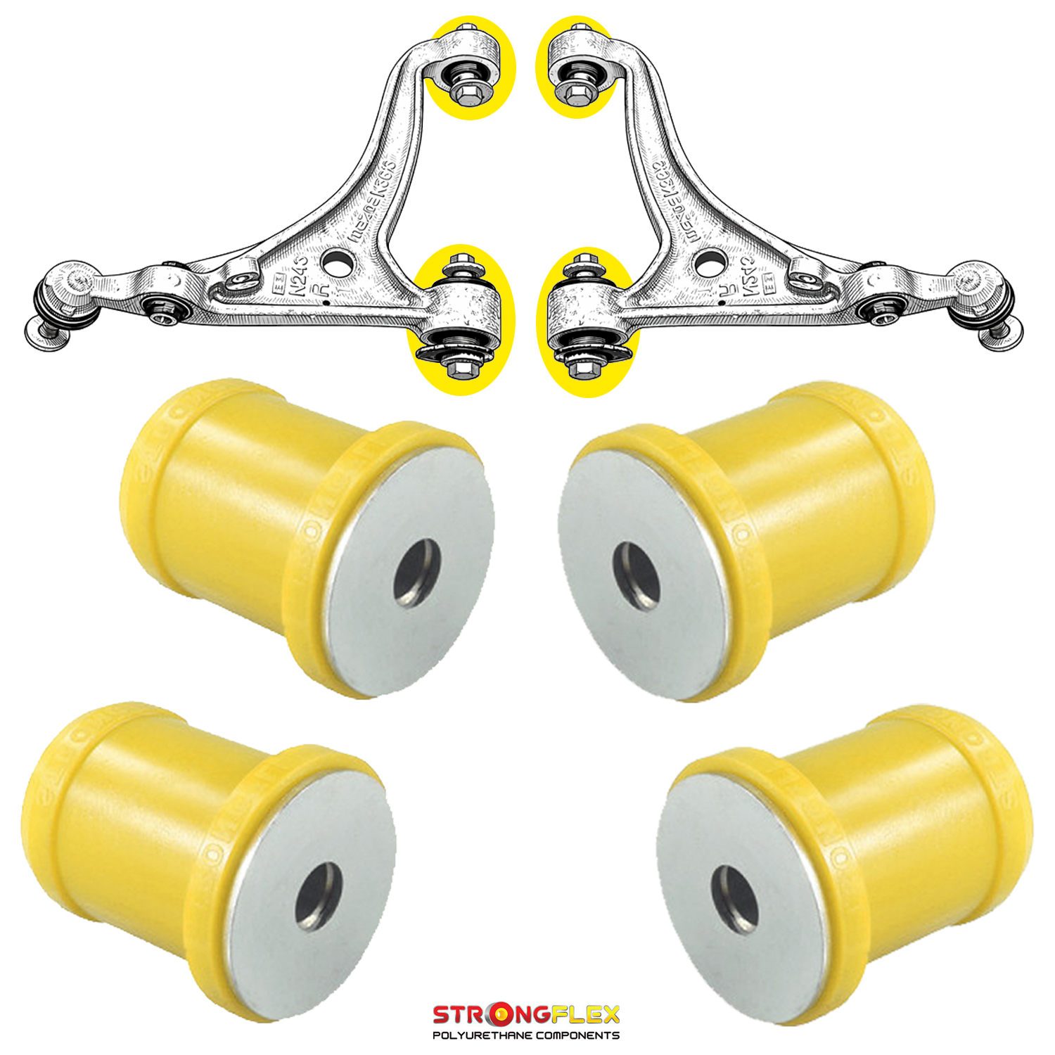 Silentblocs des deux bras supérieurs avant en polyuréthane, compatible avec les véhicules suivants: