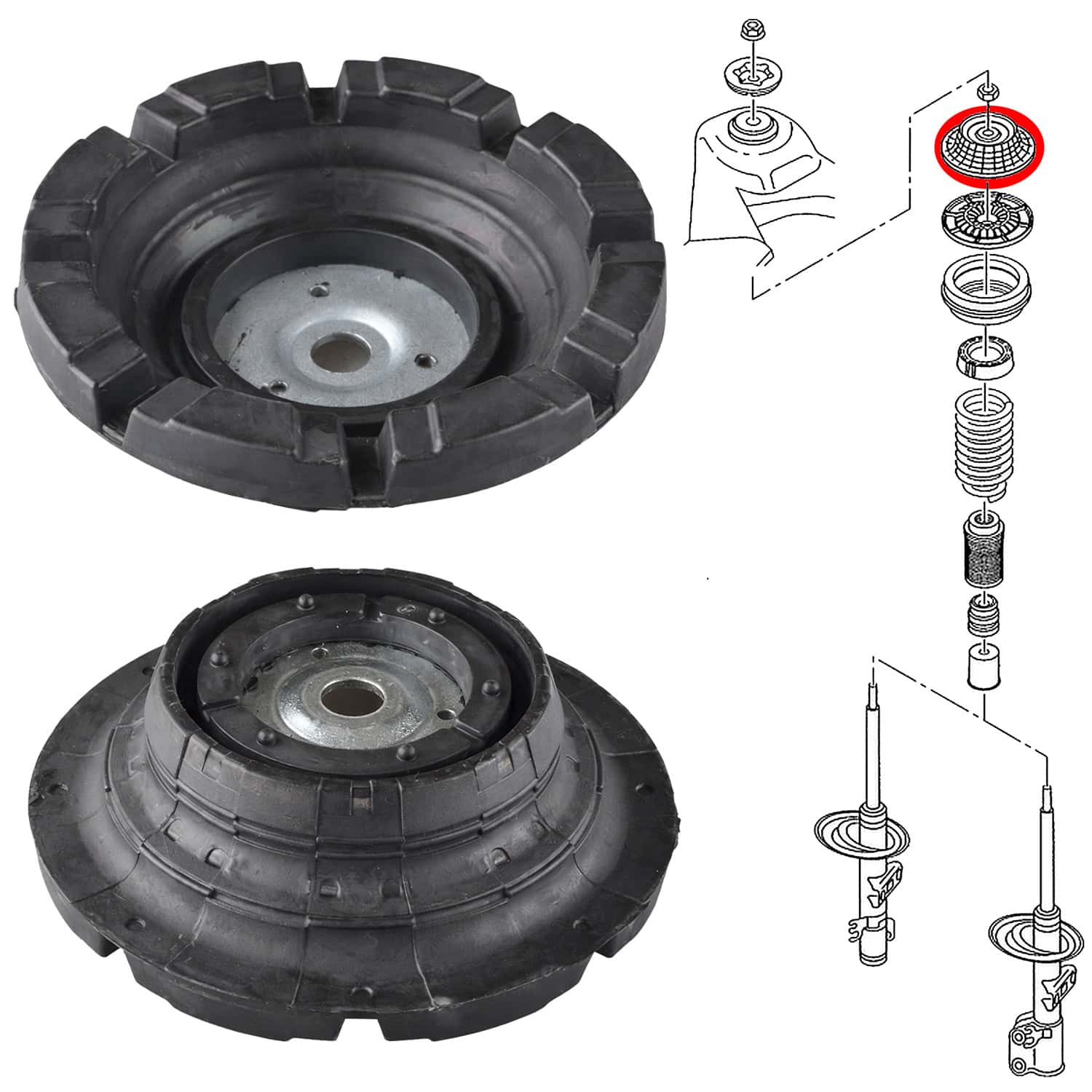 Supports supérieurs des deux amortisseurs avant (gauche/droit), compatible avec les véhicules suivants:
